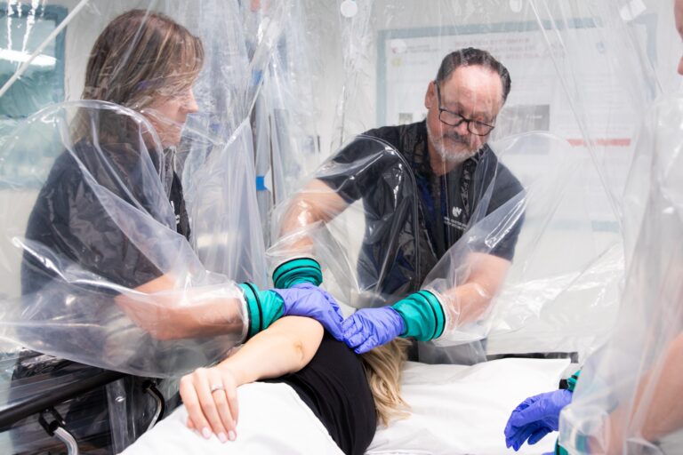 THREE “LEAN-IN GLOVE WALLS” ALLOW FOR RAPID PATIENT ACCESS.